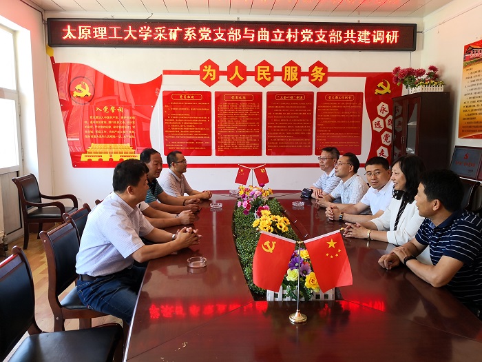 采矿系党支部一行与曲立村党支部书记、委员等人员举行了座谈,座谈会上双方互相介绍了支部建设情况,探讨支部共建、爱心帮扶等事宜,同时参观了曲立村党支部活动室、曲立村小学、文化广场等。